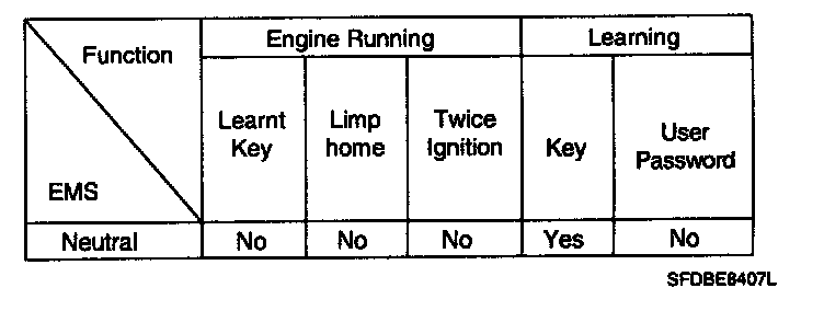 If the PCM (ECM) status and the key status do not match for teaching of keys, the tester procedure will be stopped and a specific fault code will be stored at PCM (ECM).