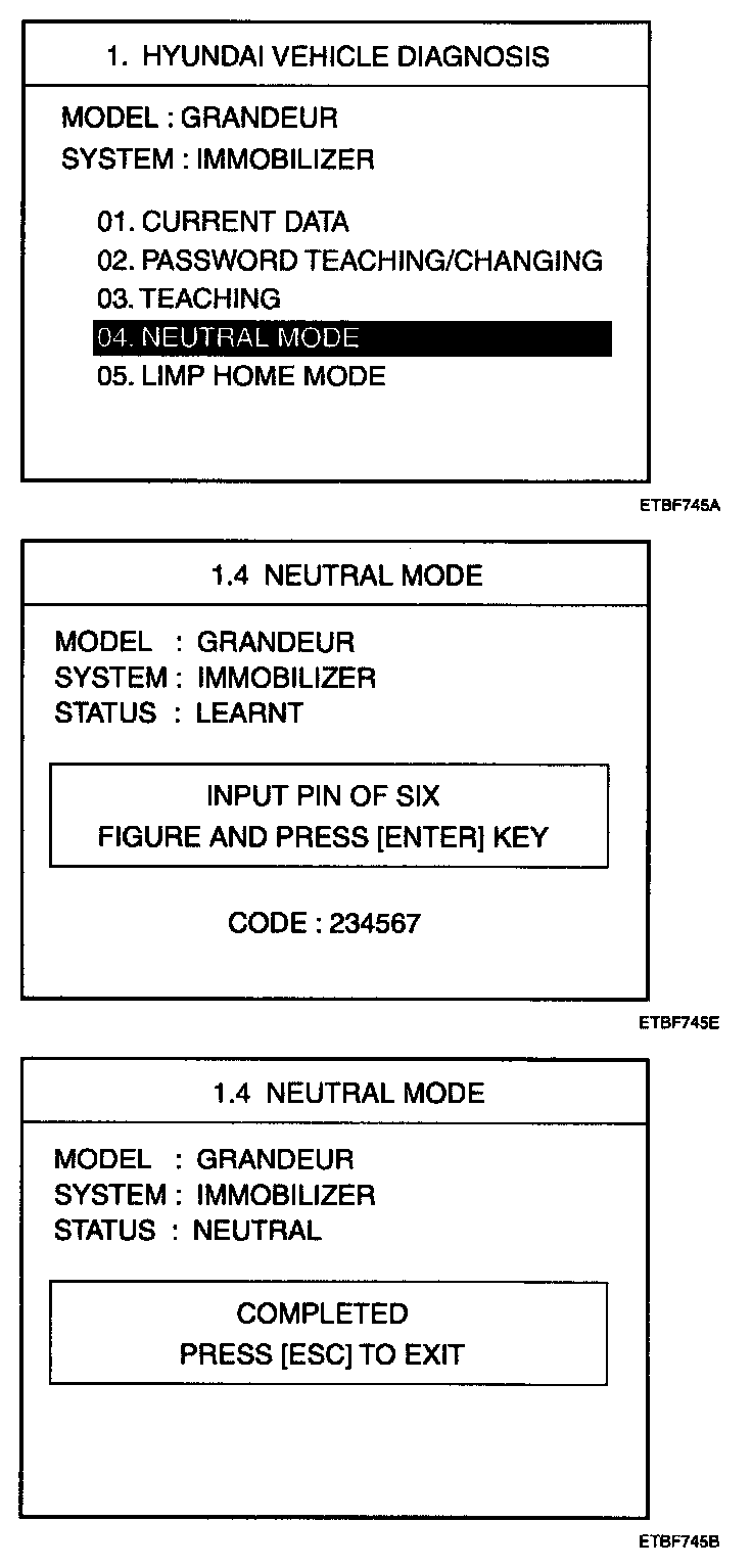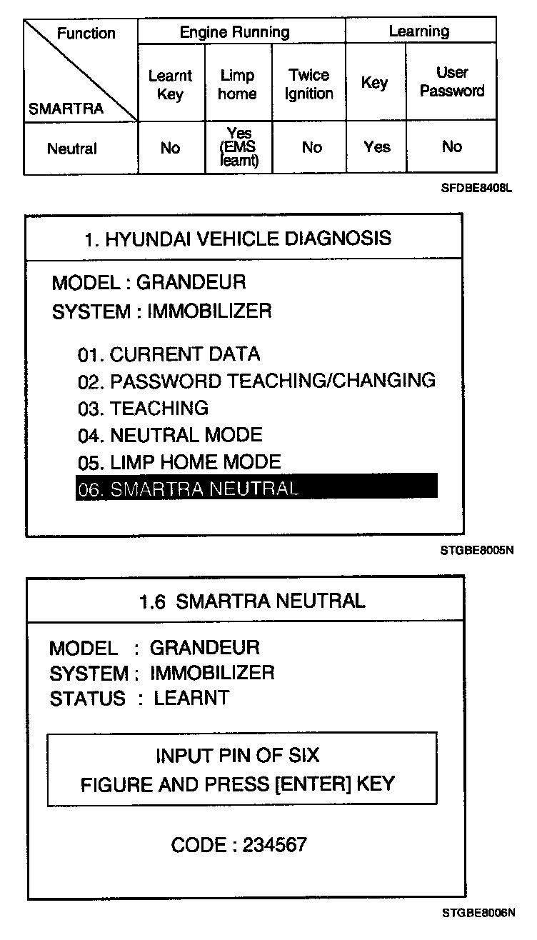 (Refer to the Things to do when Key & PIN Code the PCM (ECM) can be set to the "neutral" status by a scanner. If wrong vehicle specific data have been sent to SMARTRA three times continuously or intermittently, the SMARTRA will reject the request to enter neutral mode for one hour. Disconnecting the battery or other manipulation cannot reduce this time. After connecting the battery the timer starts again for one hour.