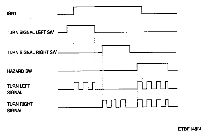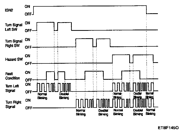 While IGN2 is ON if turn signal left switch or turn signal right switch or hazard switch input is detected, then turn signal outputs are turned ON following the switch input (left, right or hazard).