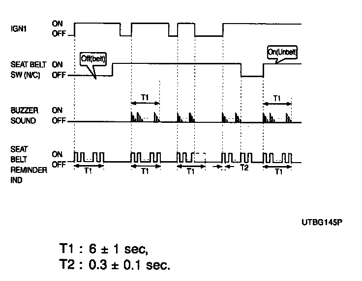 3. If IGN1 is turned OFF during seat belt reminder, the seat belt reminder indicator and buzzer stops immediately.