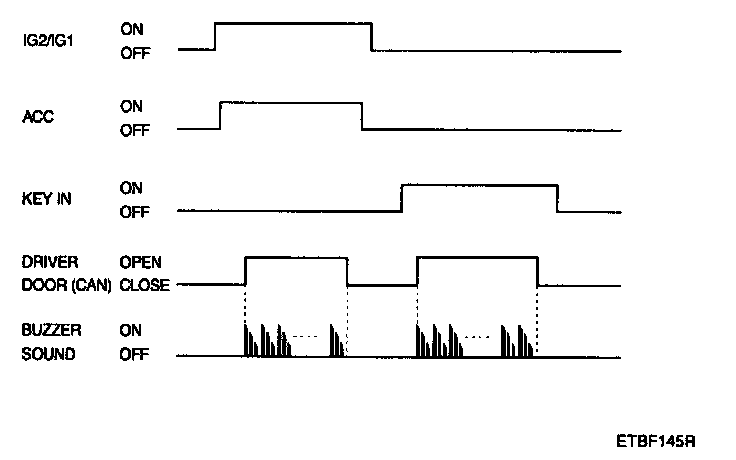 1. While IGN KEY is inserted into the key cylinder or ACC is on or IGN2 is on or IGN1 is on, if driver side door is opened. Key operated warning starts.