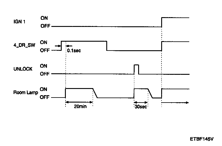 2. When room lamp off & IGN1 off & all door closed, if remote control unlock is received, room lamp is turned on for 30 seconds.