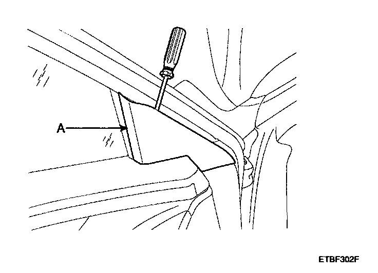 1. Remove the front door quadrant inner cover (A). Take care not to damage fixing clips.