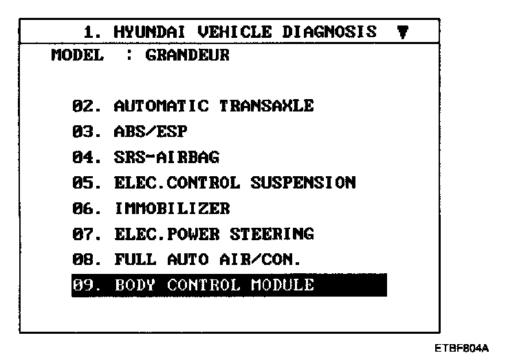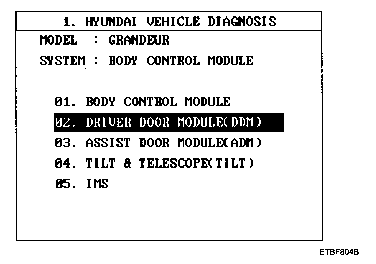 4. Select model and BCM menu.