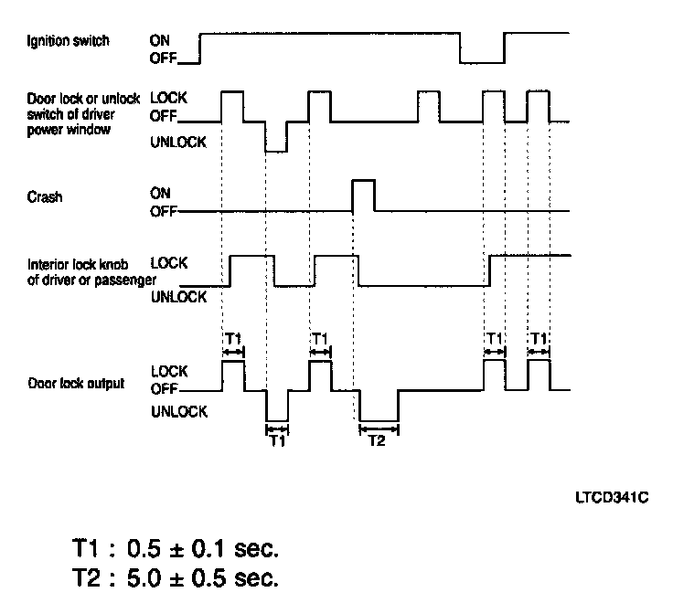 5. If the driver side or passenger side door is locked within 0.5 second after driver side or passenger side door is closed, it outputs unlock command for 1 second.