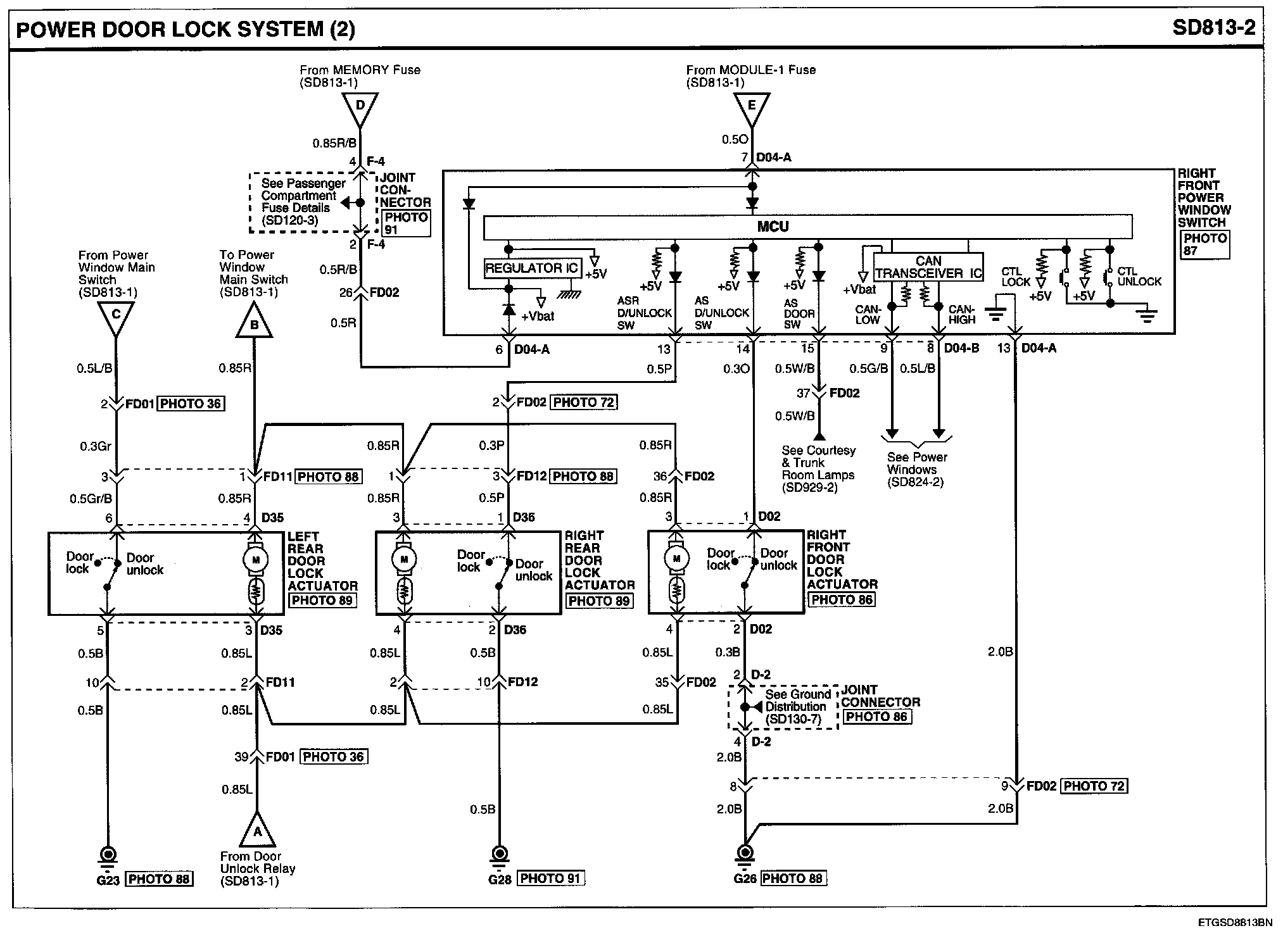Power Door Lock System Connector Pin Outs: