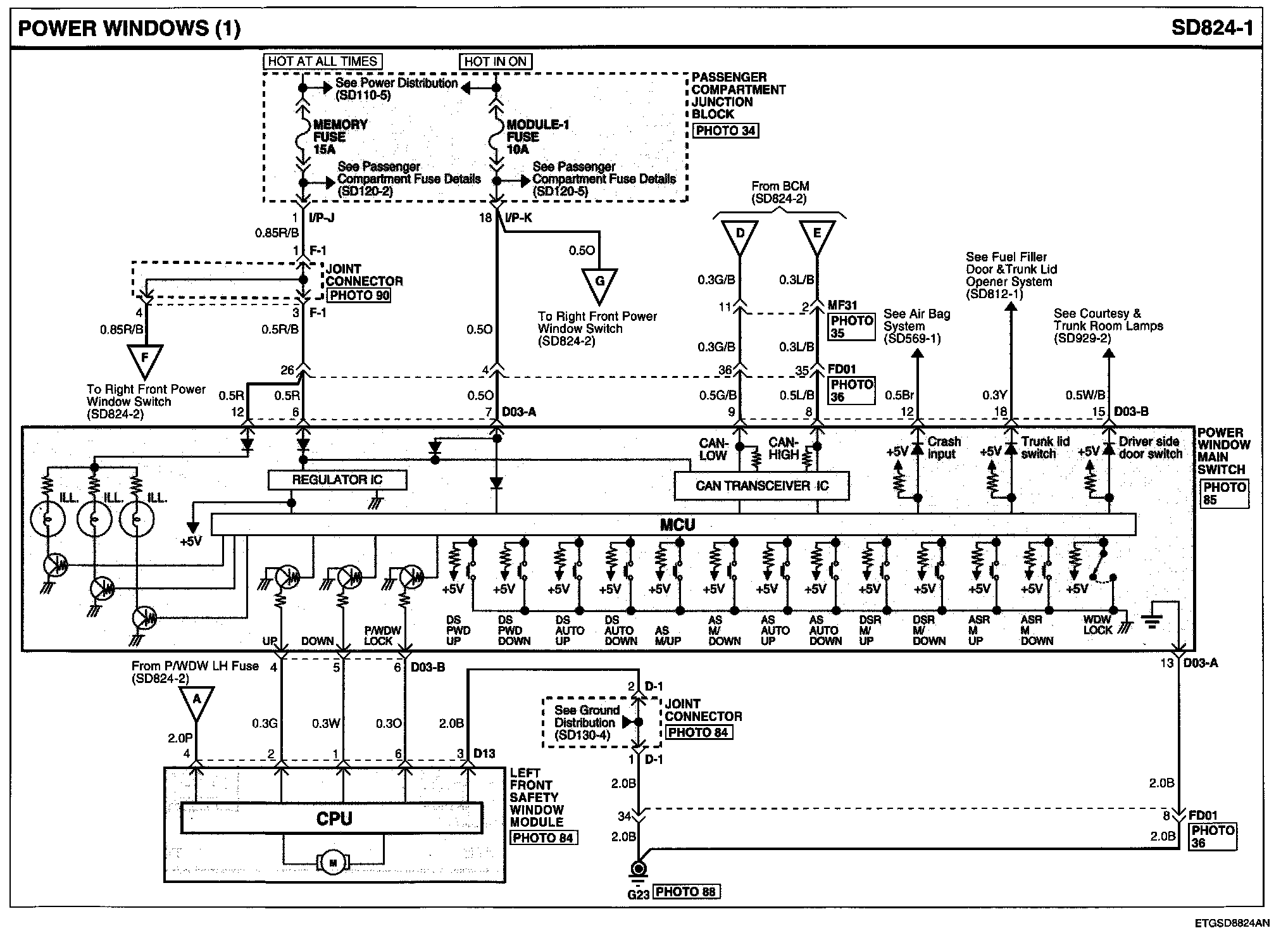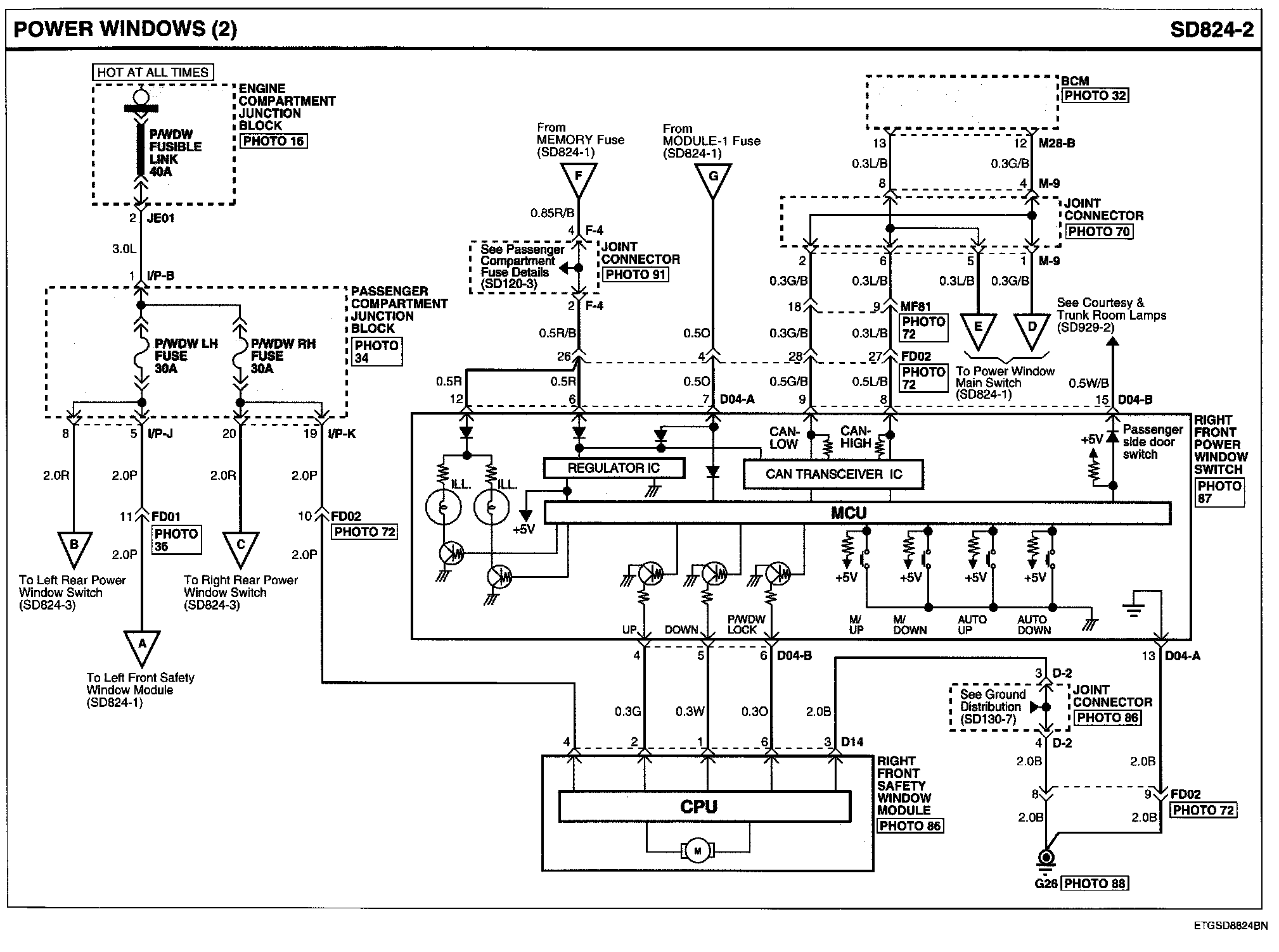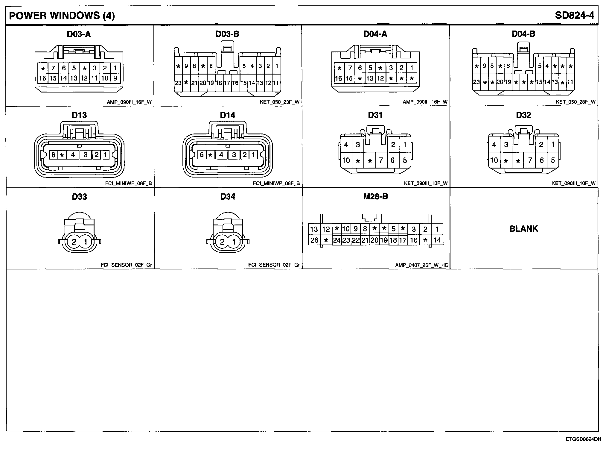 Power Windows Connector Pin Outs: