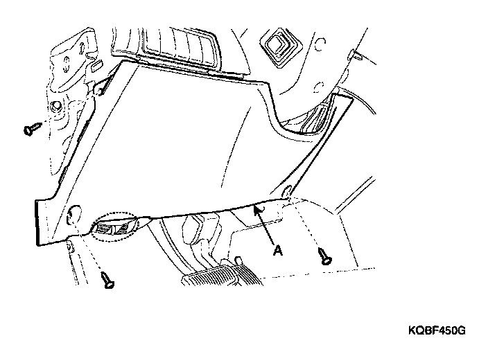 2. Remove the crash pad center garnish (A).