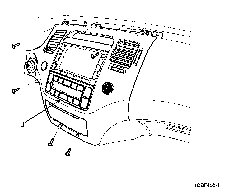 3. Remove the crash pad side cover (B).