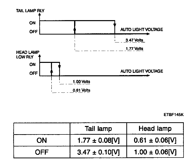In the state of IGN1 ON, when multi function switch module detects auto light switch on, tail lamp relay output and head lamp low relay output are controlled according to auto light sensor's input.