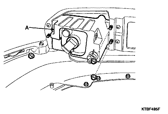 4. Remove the front fog lamp assembly (A) after loosening nuts and disconnecting the fog lamp connector.