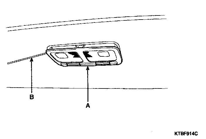 2. Remove the room lamp assembly (A) by using the scraper (B) and then disconnect the 2P connector.