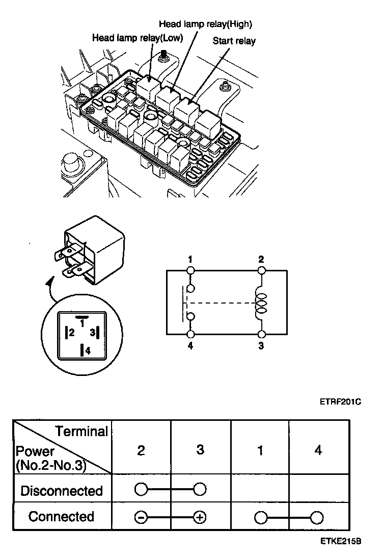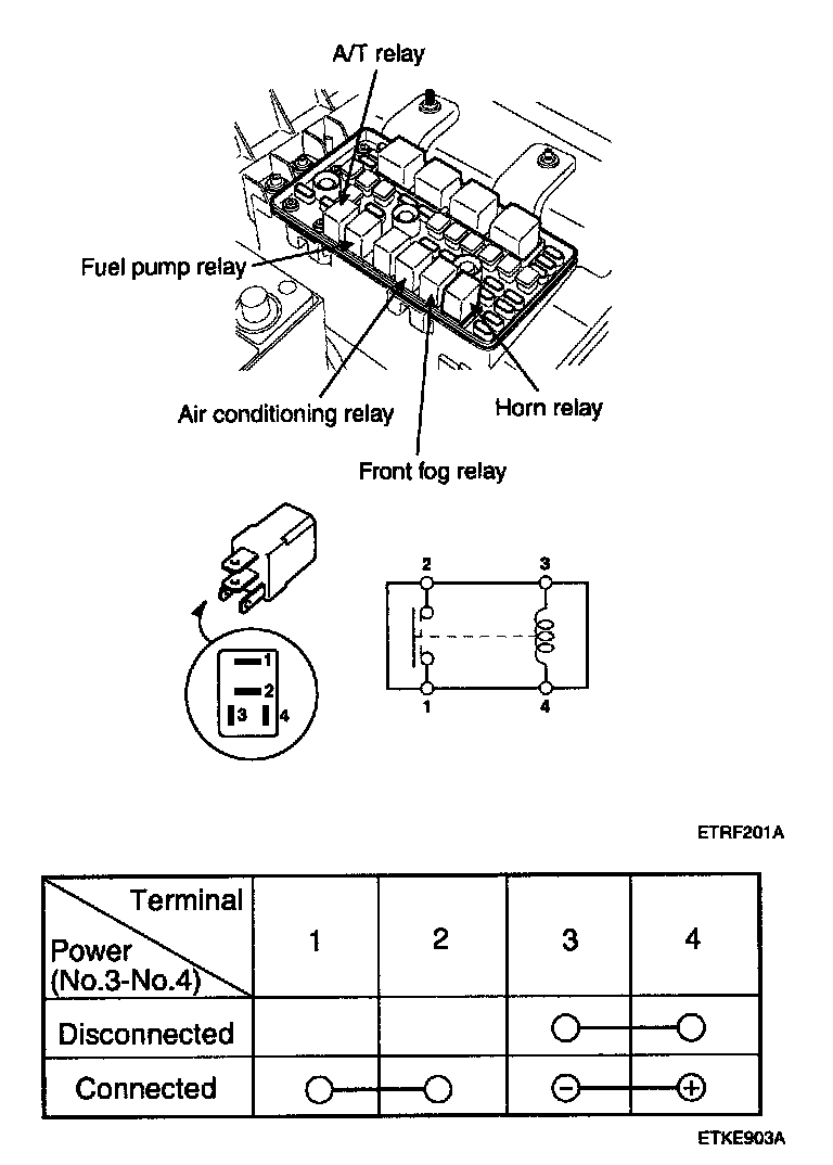 2. There should be no continuity between the No.1 and No.4 terminals when power is disconnected.