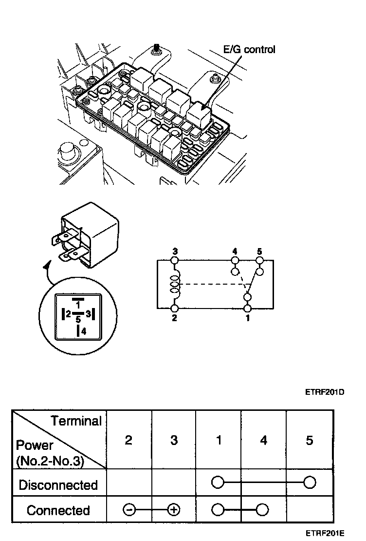 2. There should be continuity between the No.1 and No.5 terminals when power is disconnected.