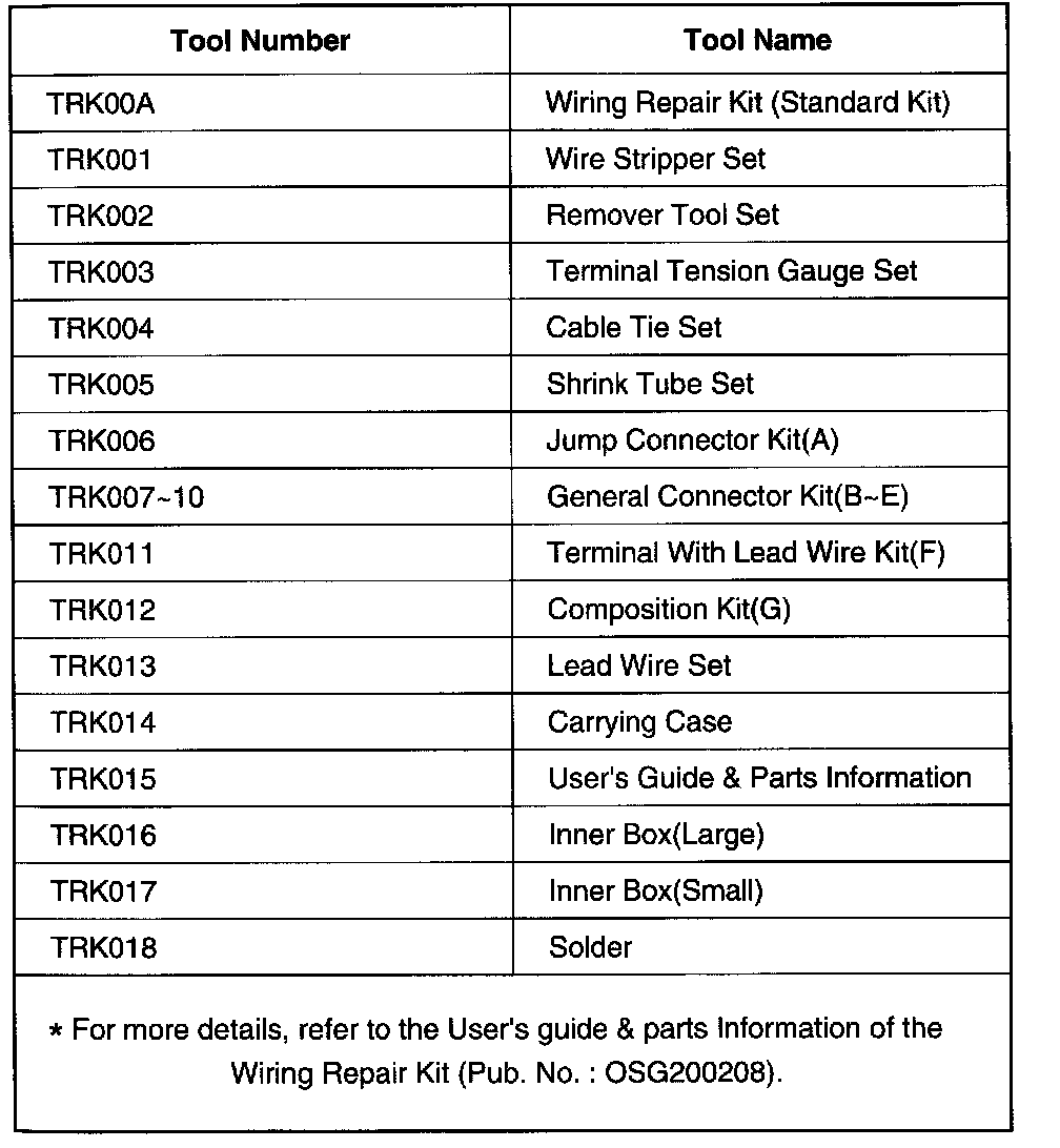 WIRING REPAIRREFERENCE SERVICE TOOLS