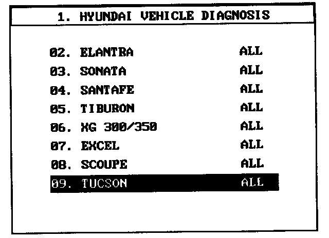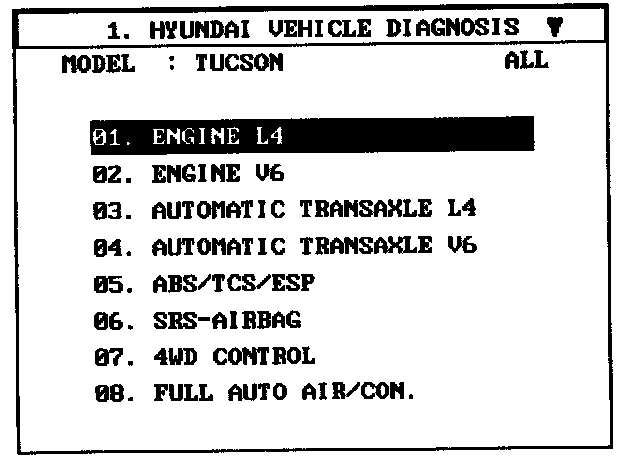 1. Select "Vehicle" and "Engine" (For example, TUCSON 2.0L L4).