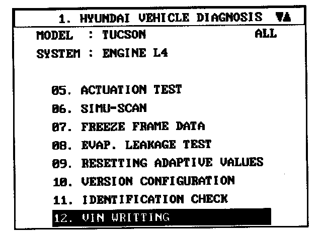 VIN PROGRAMMING PROCEDUREVIN (Vehicle Identification Number) is a number that has the vehicle's information (Maker, Vehicle Type, Vehicle Line/Series. Body Type, Engine Type, Transmission Type, Model Year, Plant Location and so forth. For more information, please refer to the group "GI" in this SERVICE MANUAL). When replacing a PCM, the VIN must be programmed in the PCM. If there is no VIN in PCM memory, the fault code (DTC P0630) is set.