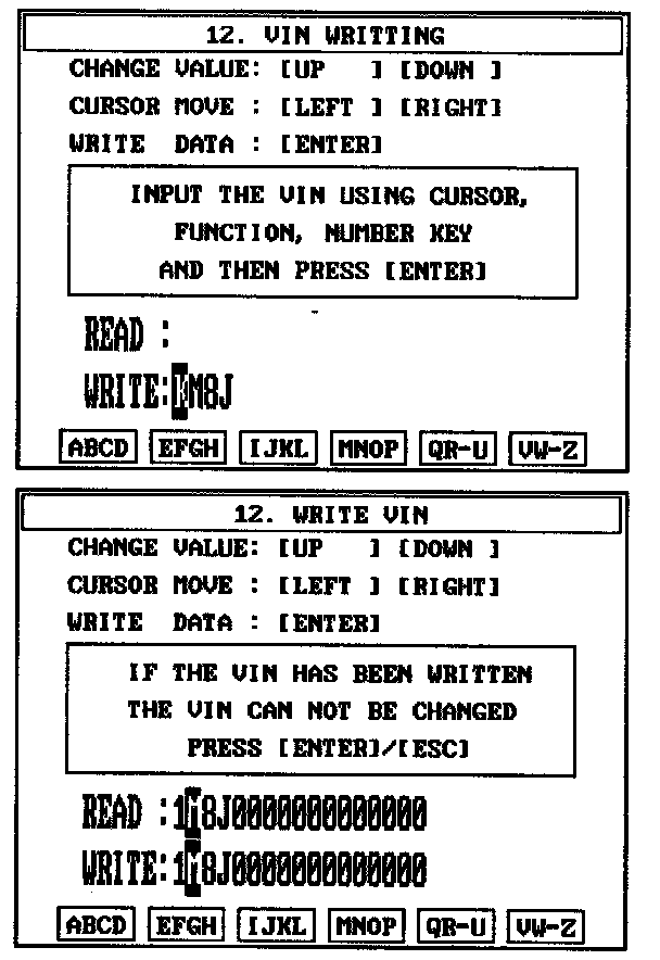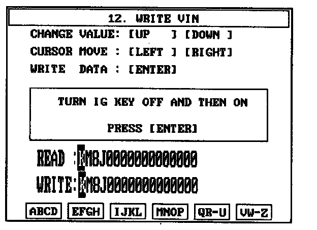 4. Write the VIN with cursor, function and number keys.