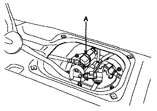 3. Disconnect Sub Fuel Sender Connector (A) and Suction Tube Quick-Connector (B).