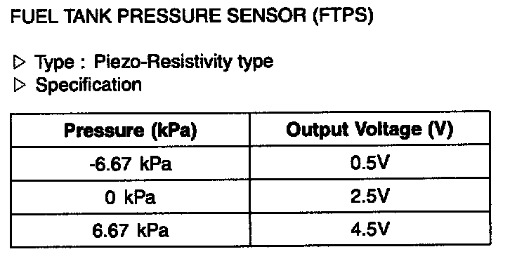 Fuel Tank Pressure Sensor (FTPS) - Specification: