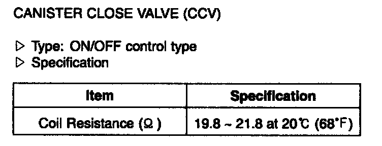 Canister Close Valve (CCV) - Specification: