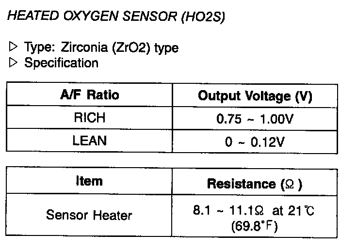 Heated Oxygen Sensor(HO2S) - Specification: