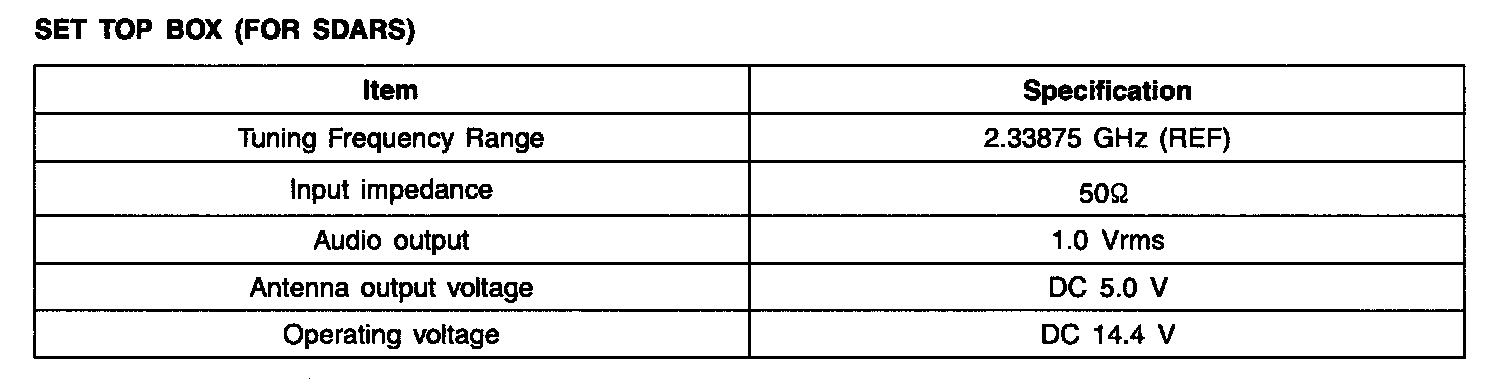 Set Top Box (for SDARS) - Specification: