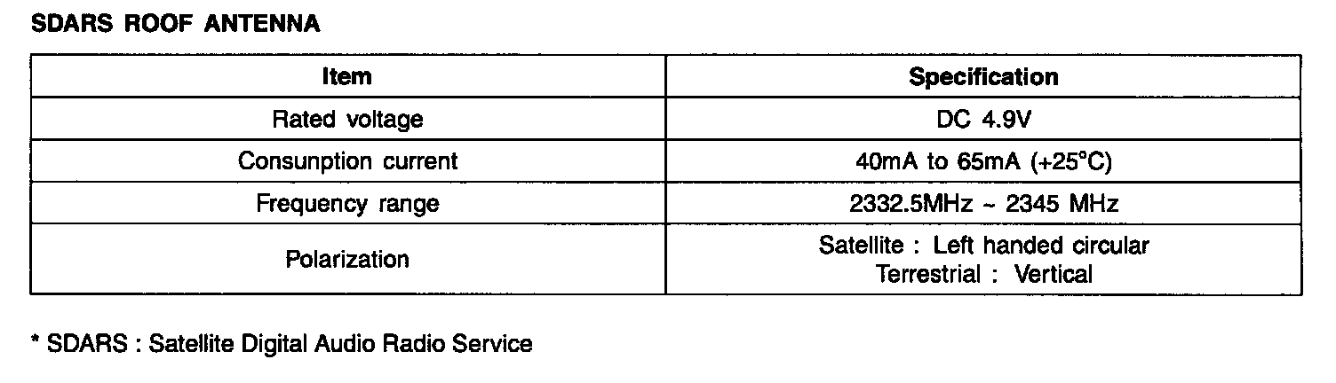 SDARS Roof Antenna - Specification: