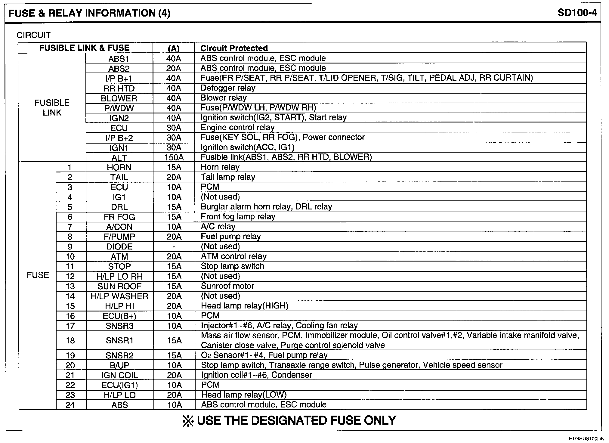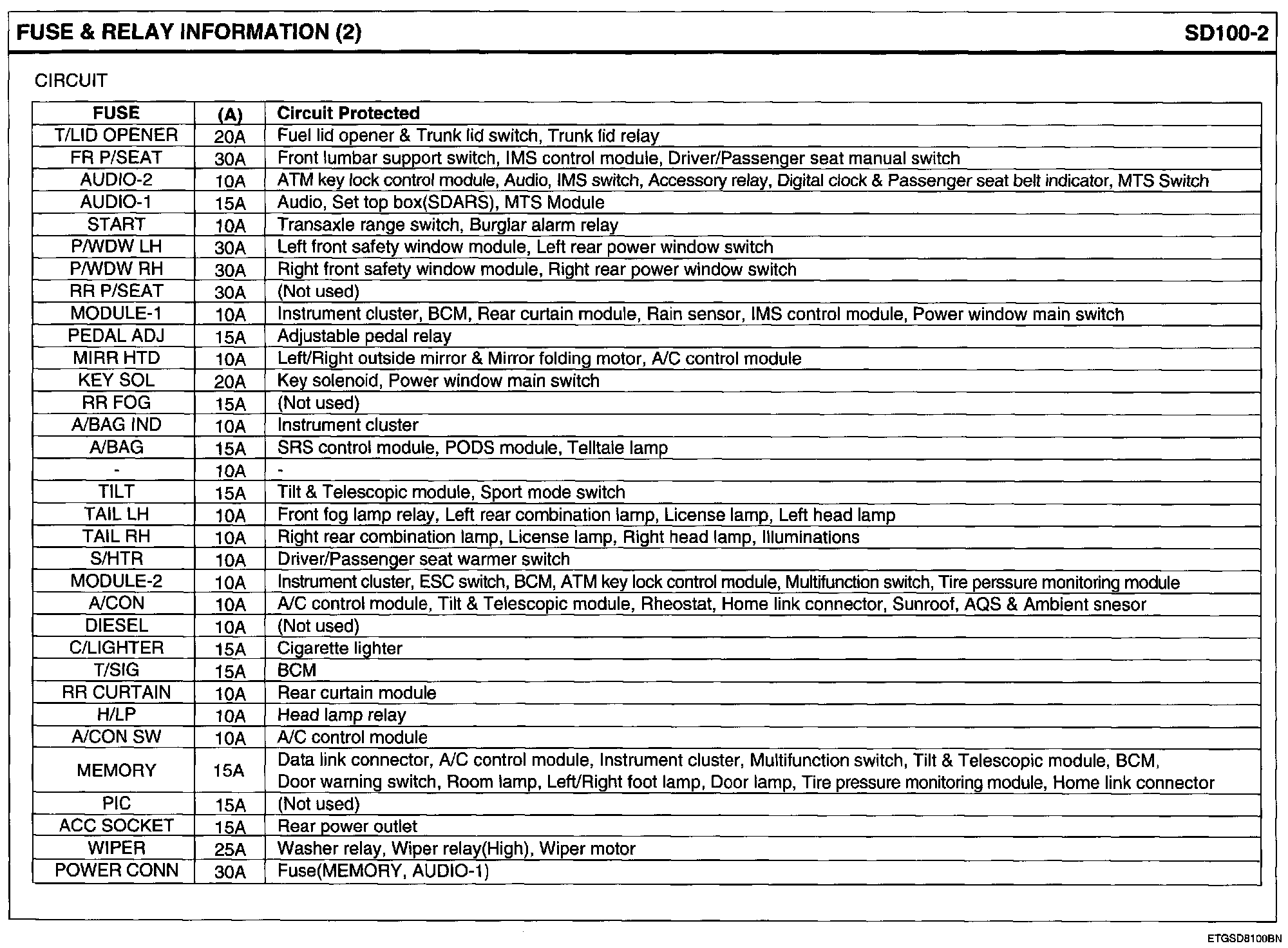 Passenger Compartment Junction Block Layout Circuit Details: