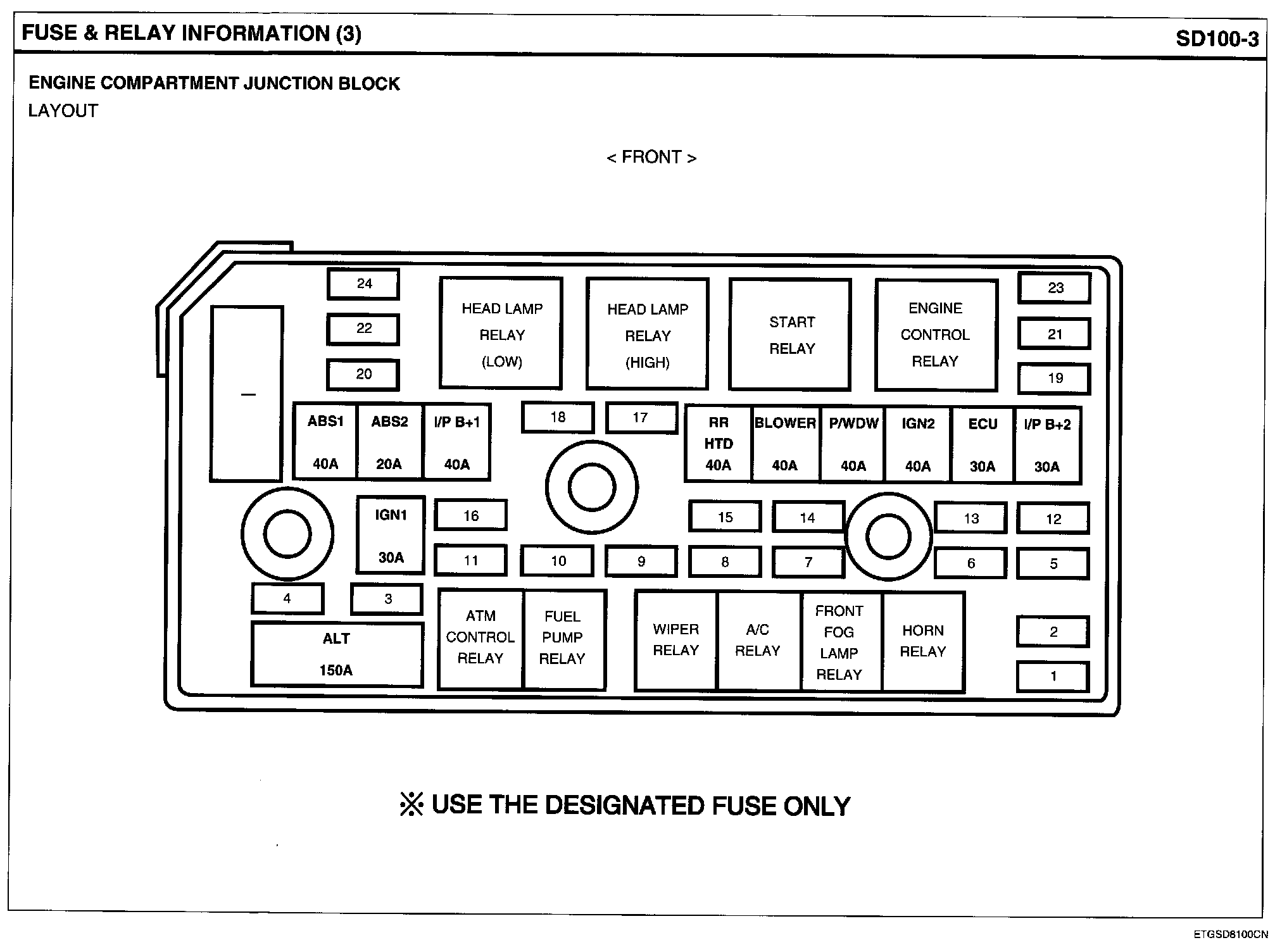 Engine Compartment Junction Box Layout Circuit Details: