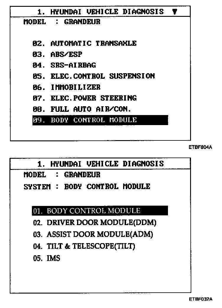 3. Select model and BCM menu.