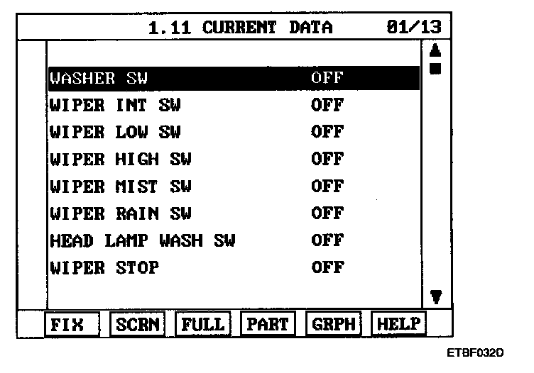 5. Check input/output value of washer & wiper switch.