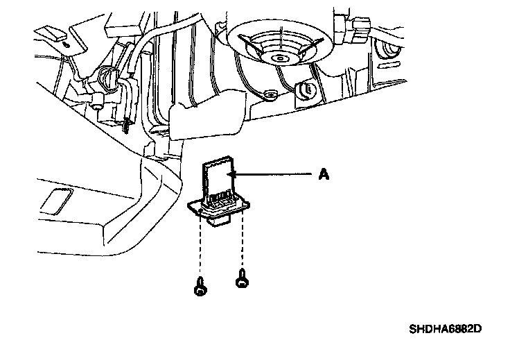 2. Disconnect the blower resistor connector (A) at the connecting part blower unit.