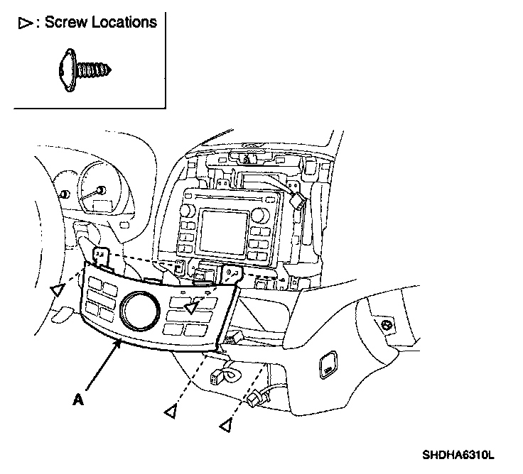 4. Remove the heater & A/C controller (A) after loosening 4 screws.