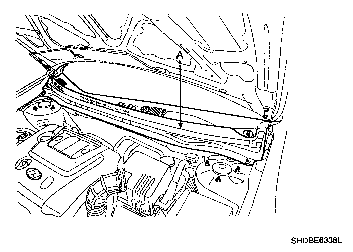 2. Remove the weather strip and the cowl top cover (A) after removing 4 rivets.