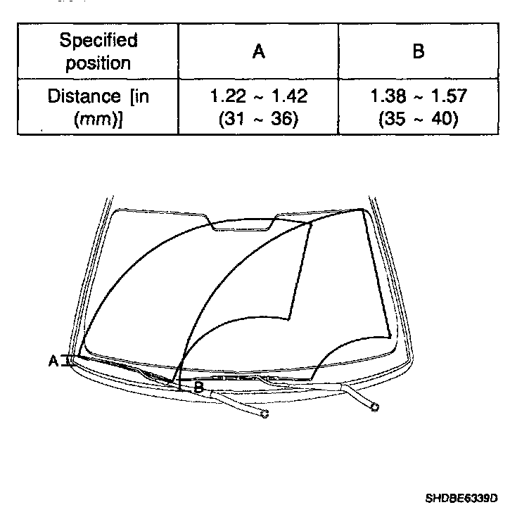 1. Install the wiper arm and blade to the specified position.