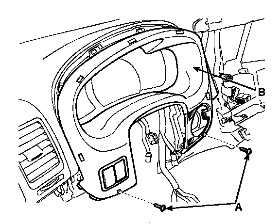 Remove the cluster facia panel (B) after removing the screws (A) (2EA) and trip switch connector.