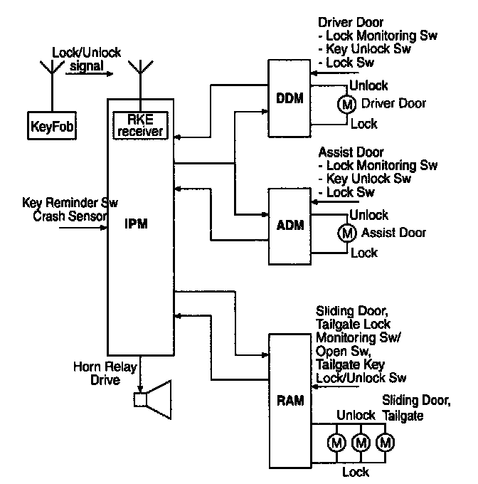 - RAM will pass this signal to LH PSD and RH PSD then the burglar alarm state is decided depending on the vehicle condition.