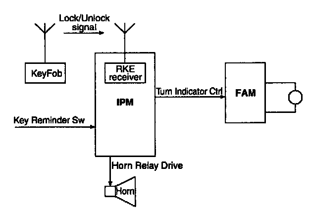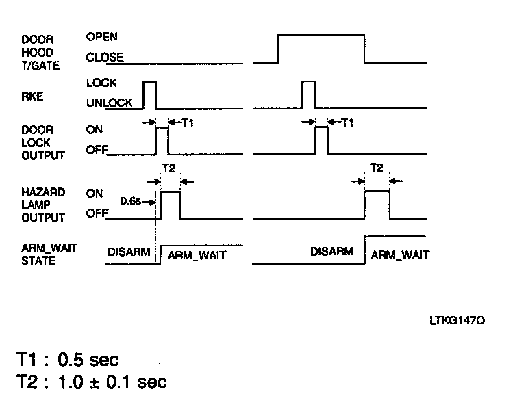 - If RKE unlock signal is received, then UNLOCK output is issued together with the flashing of hazard lamp (two times) and the system enters into the DISARM condition.