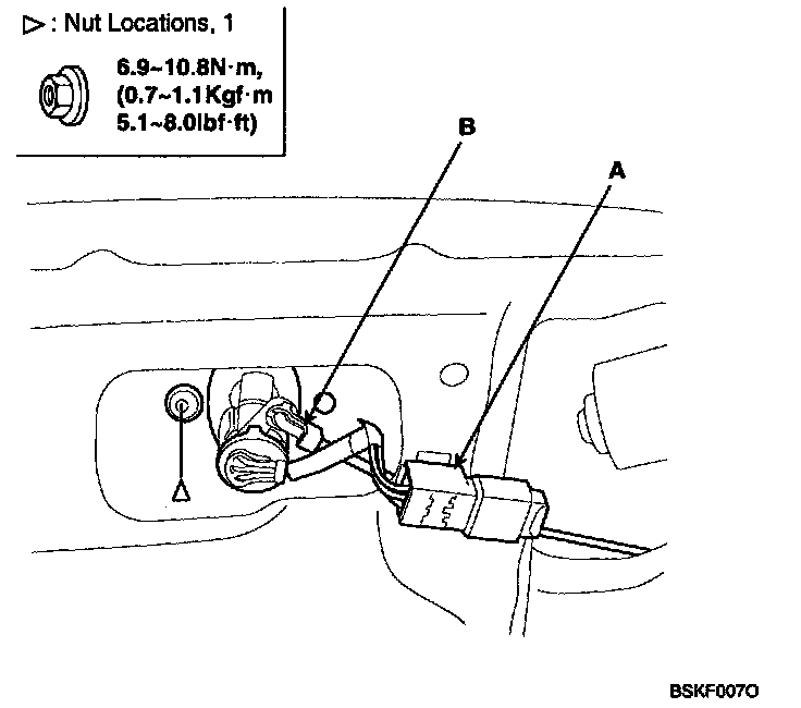 Disconnect the key rod (B) and connector (A).