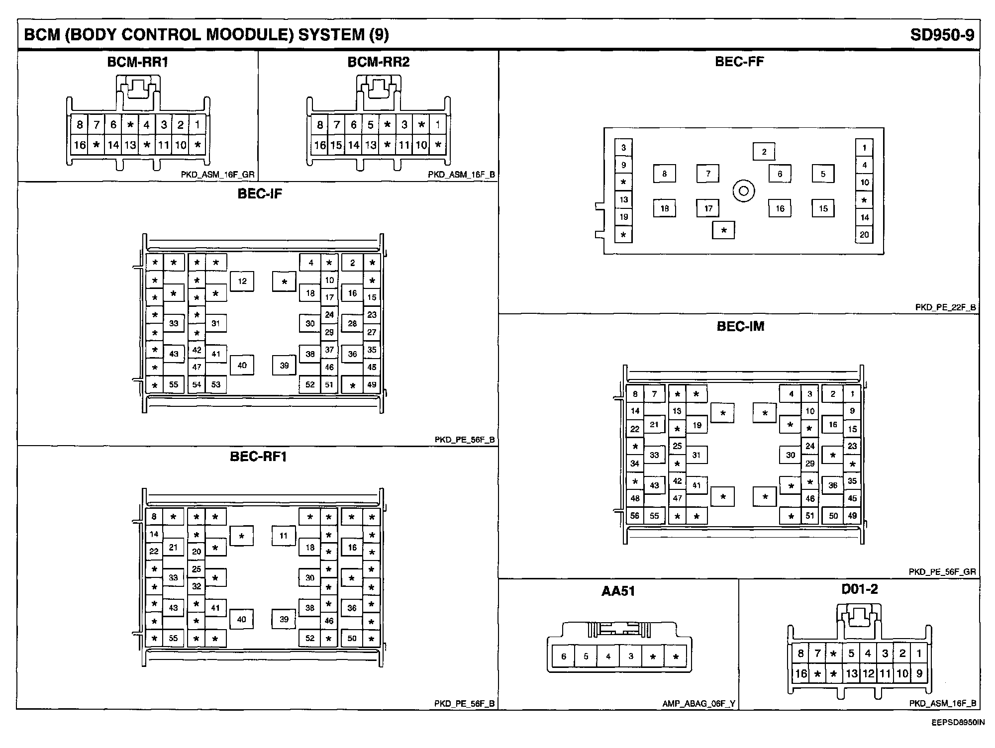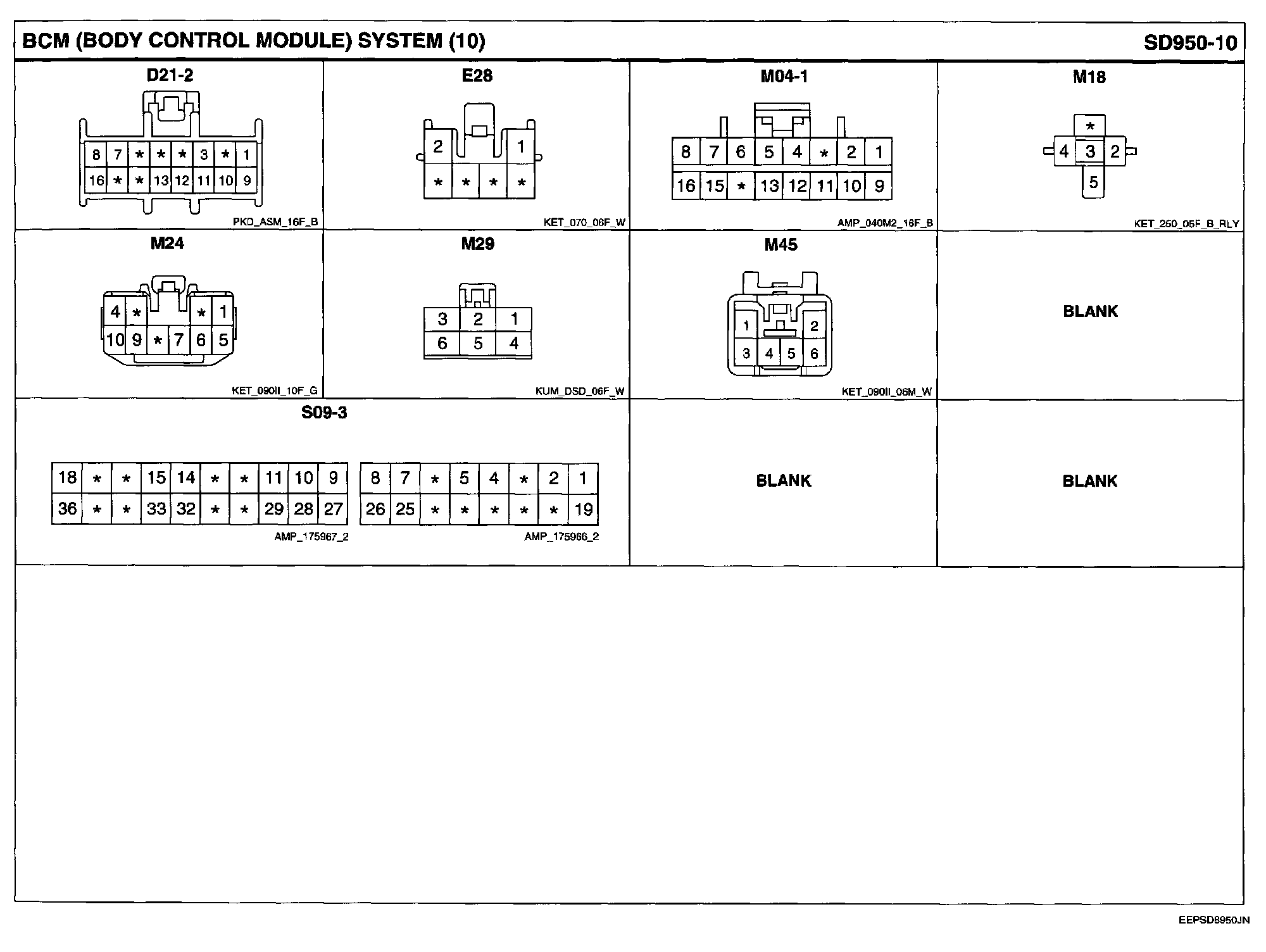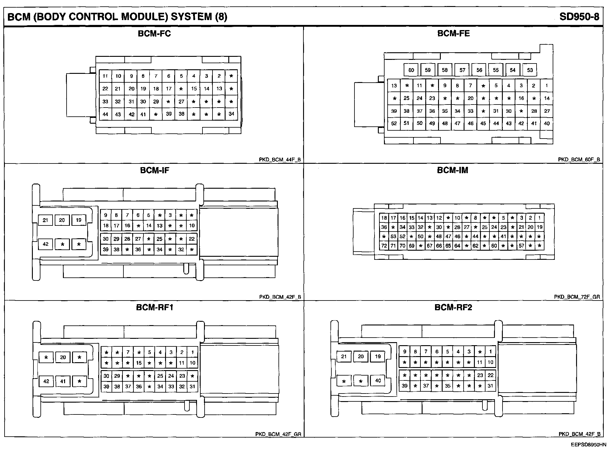 BCM (Body Control Module) System Connector Pin Outs: