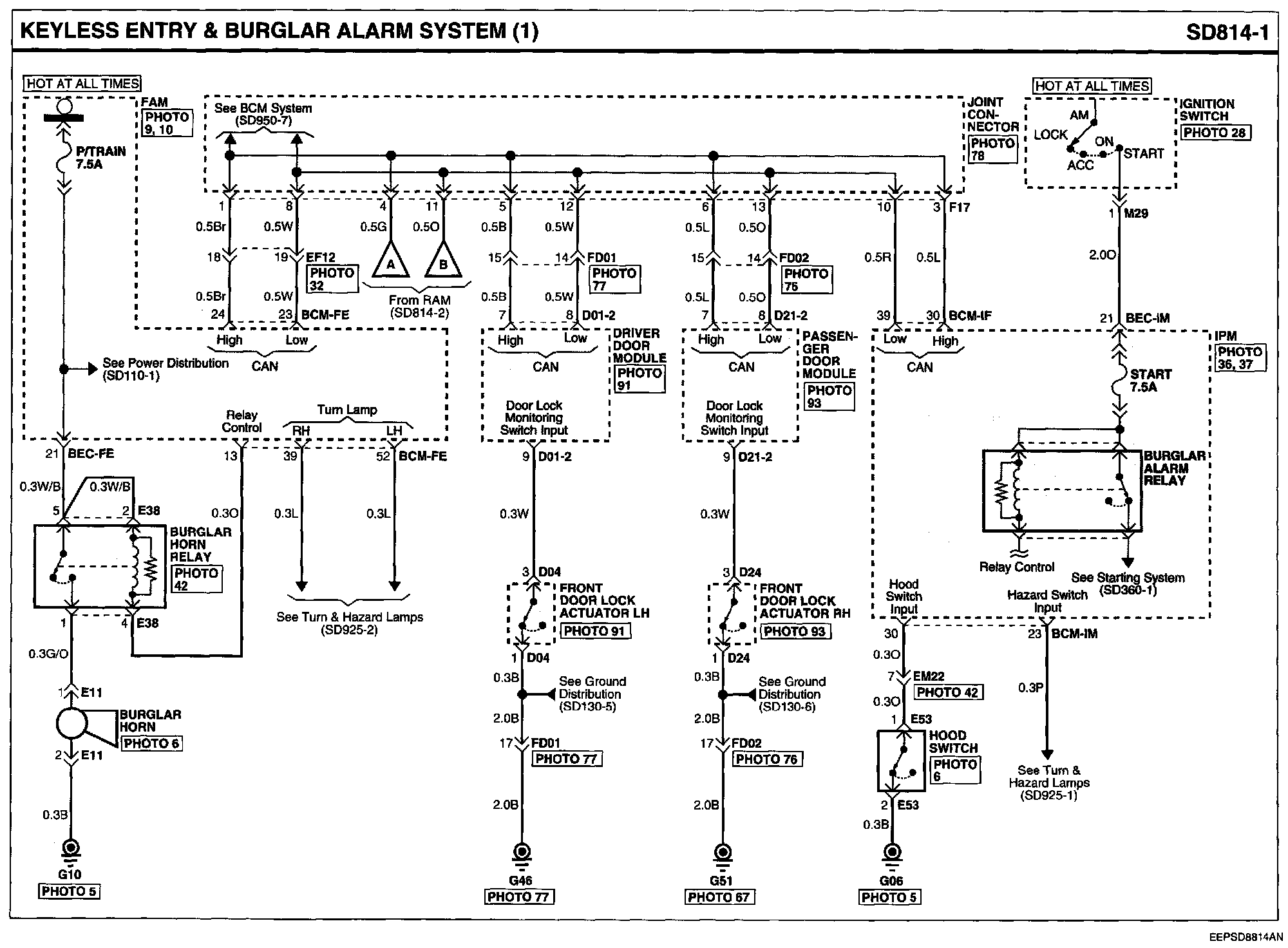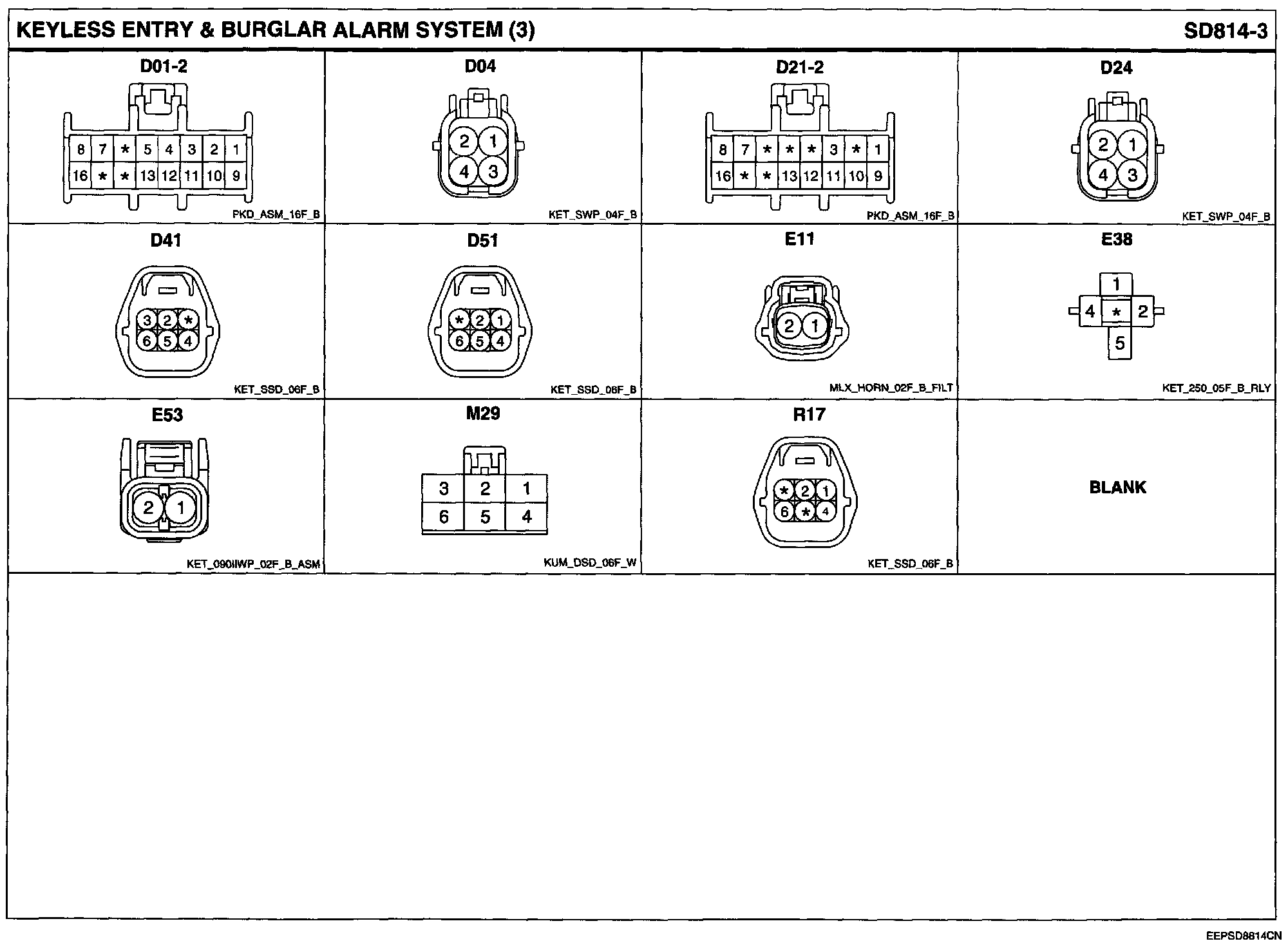 Keyless Entry & Burglar Alarm System Connector Pin Outs: