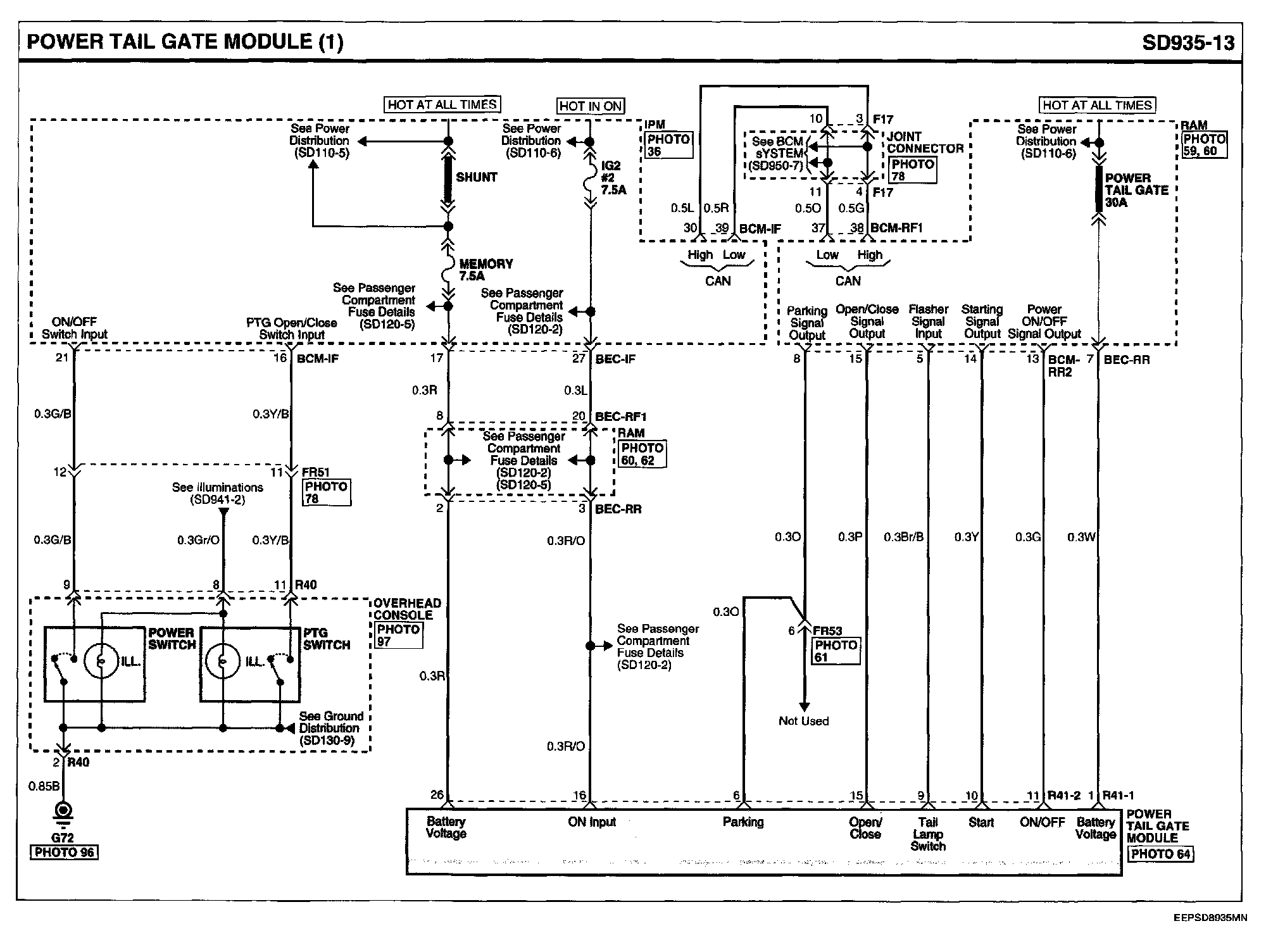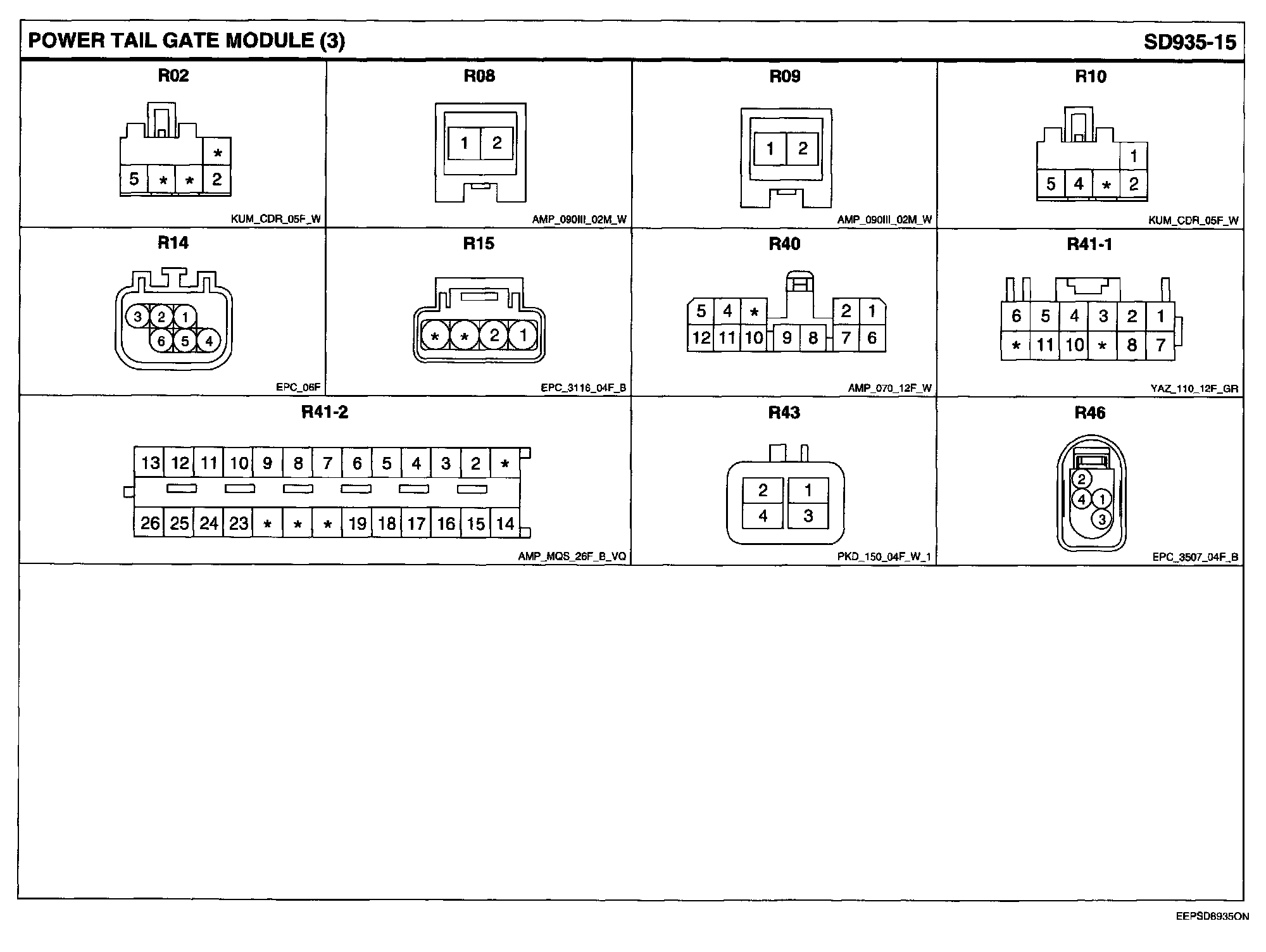 Power Tail Gate Module Connector Pin Outs: