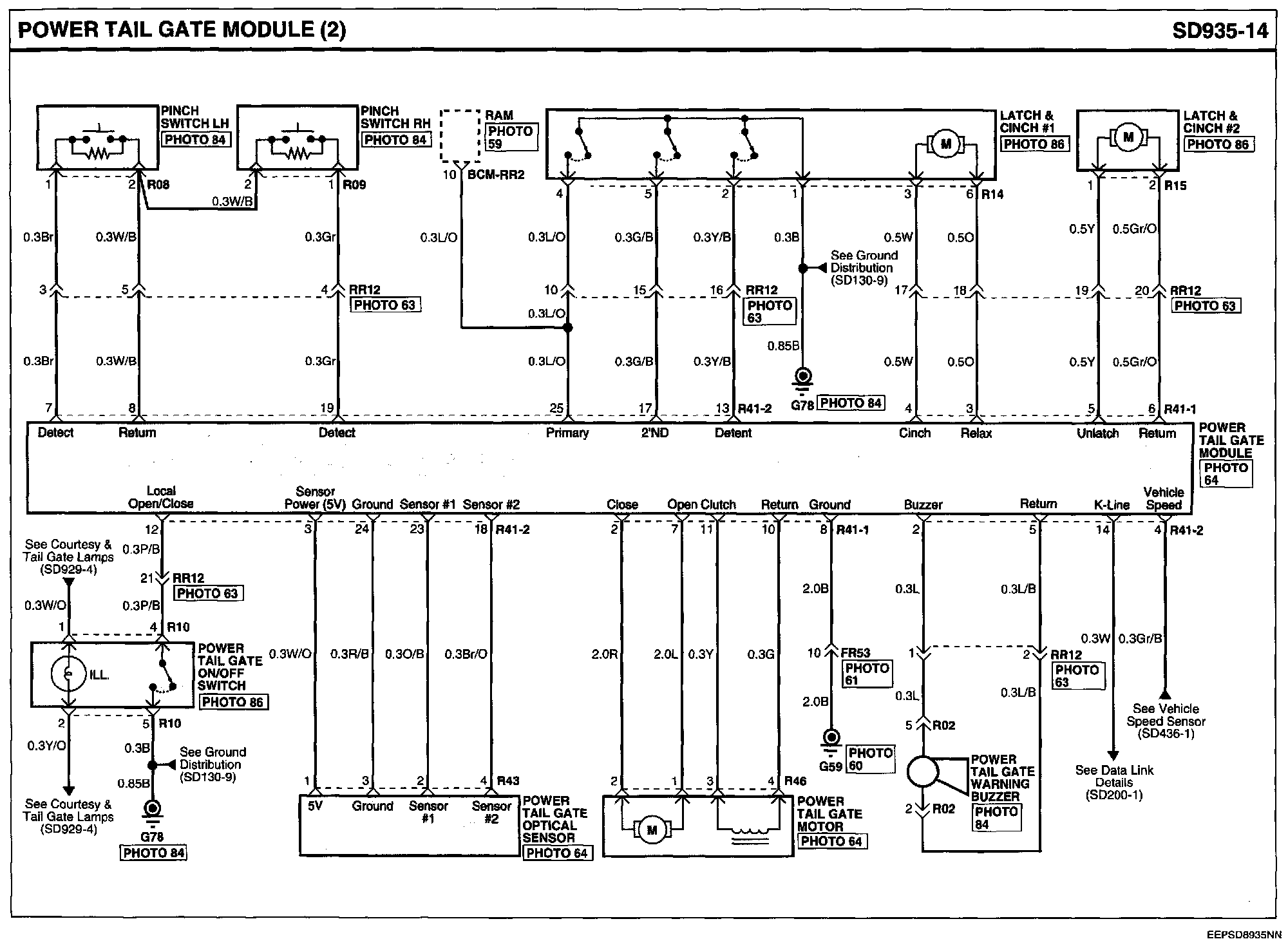 Locations: Location photographs (references to PHOTOS) referred to within these diagrams can be found via the photo number at the vehicle level under Locations by Photo Number. Component Locations