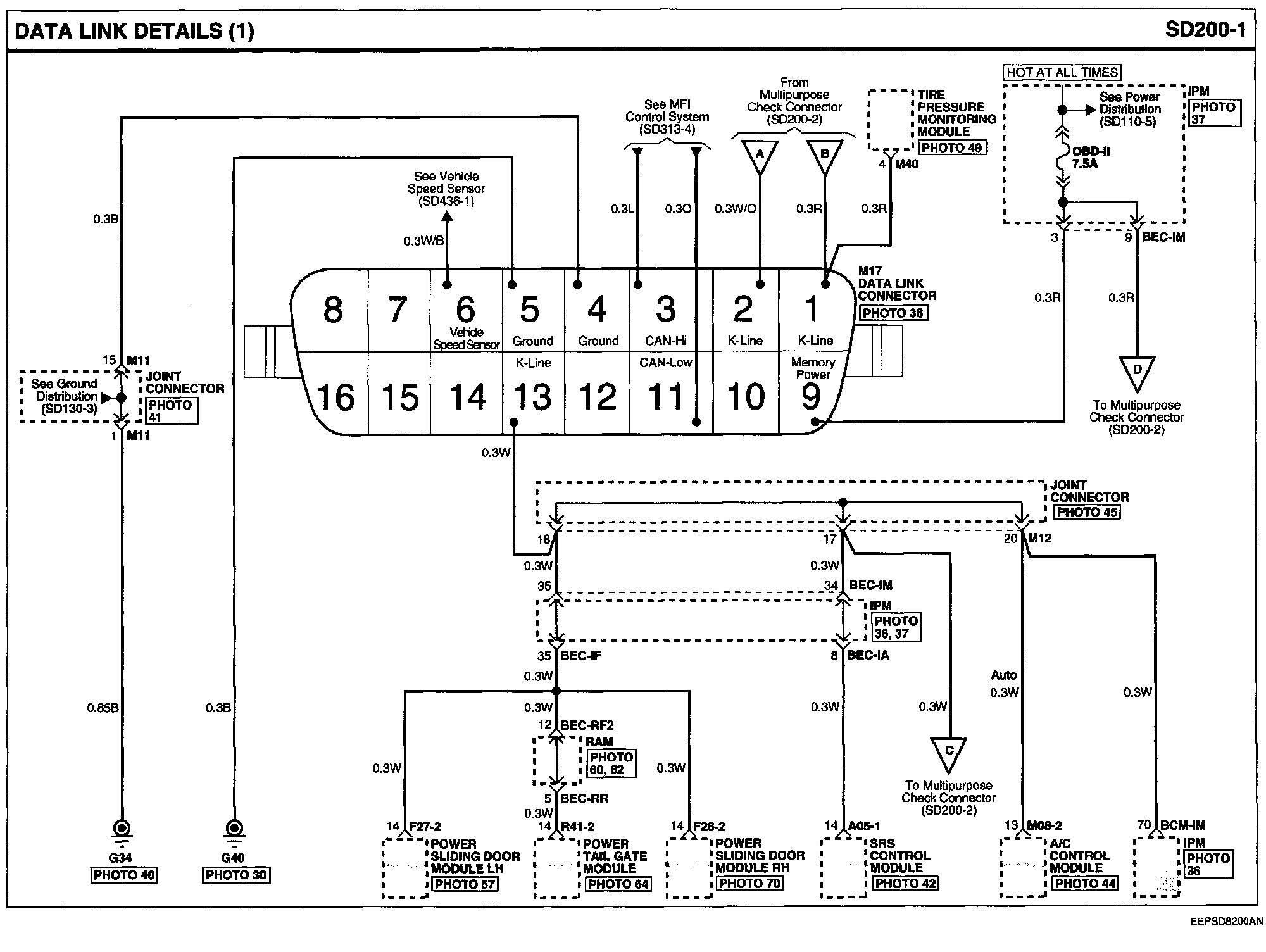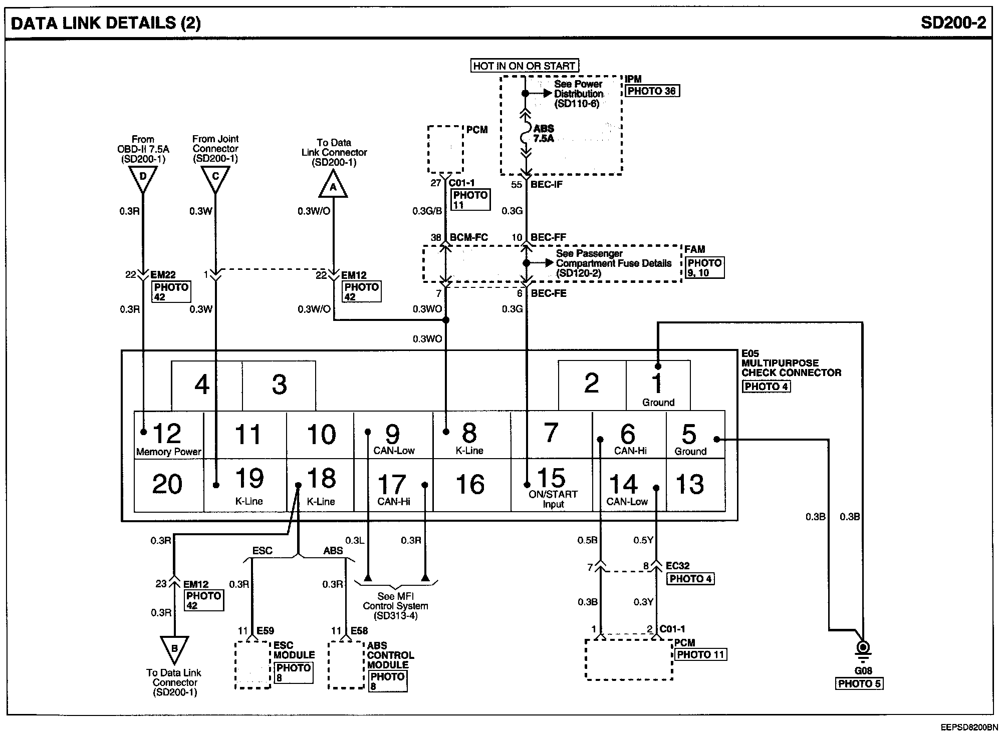 Locations: Location photographs (references to PHOTOS) referred to within these diagrams can be found via the photo number at the vehicle level under Locations by Photo Number. Component Locations