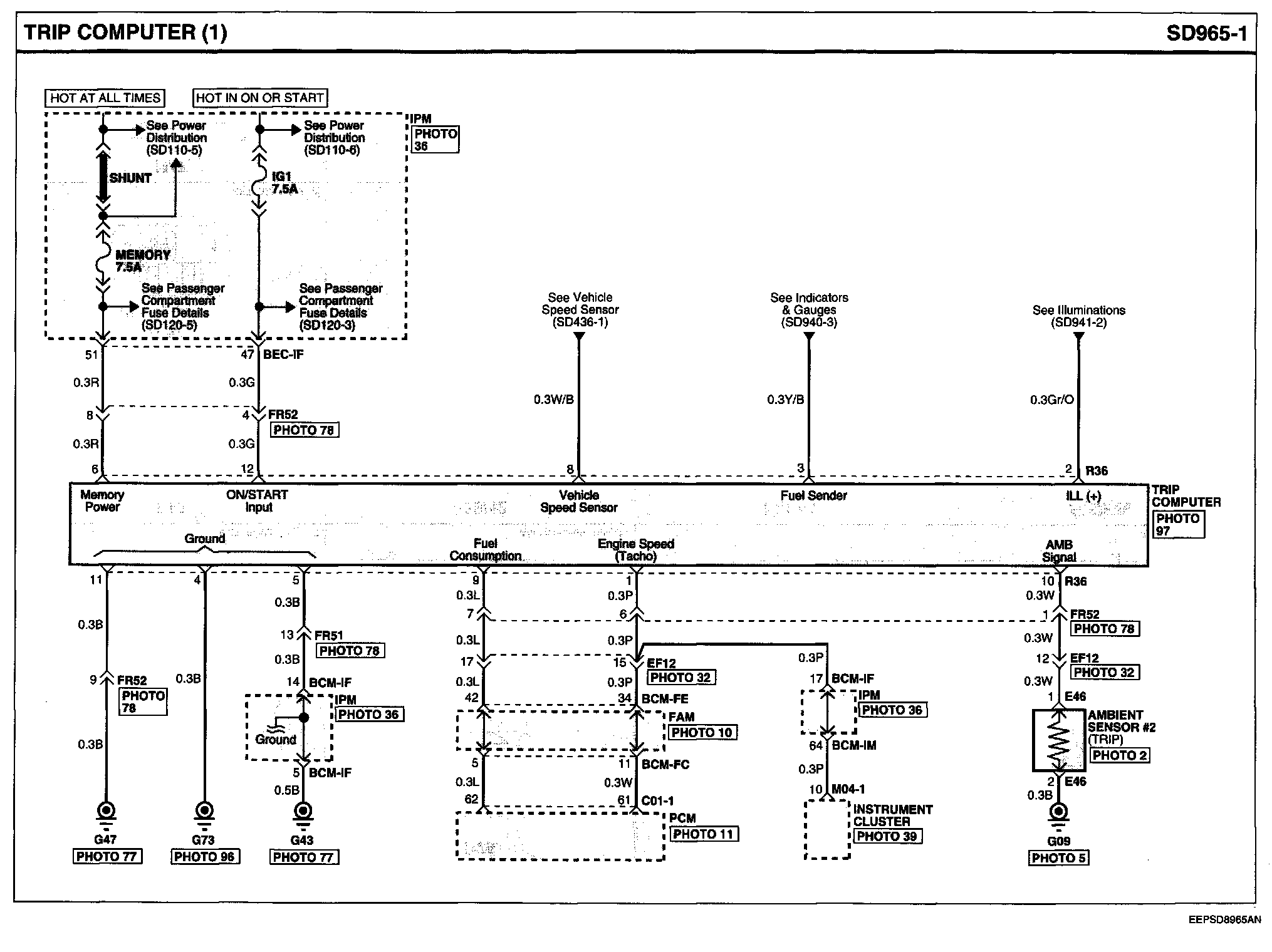 Locations: Location photographs (references to PHOTOS) referred to within these diagrams can be found via the photo number at the vehicle level under Locations by Photo Number. Component Locations