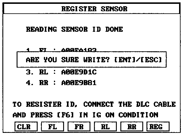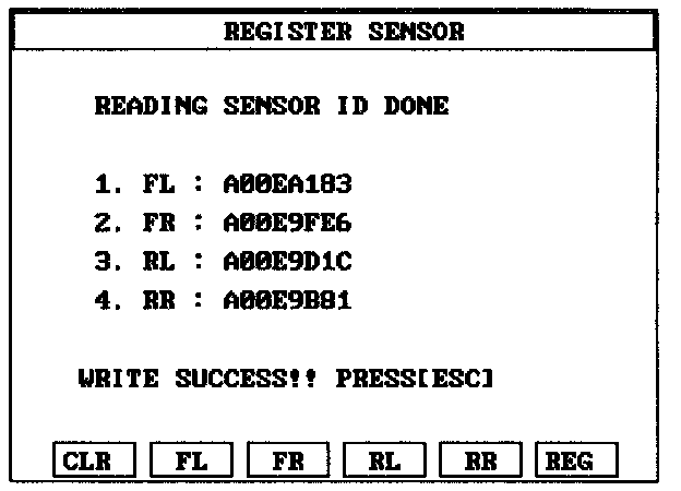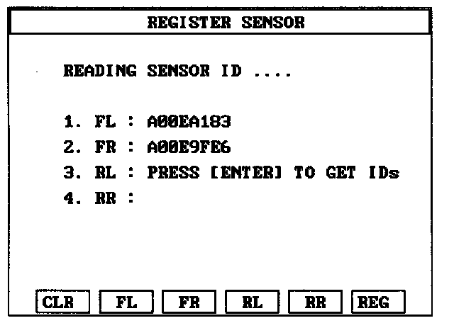 1. Read the four sensor's ids starting with sensor 1 (1 normally front left, 2 front right, 3 rear left, 4 rear right).