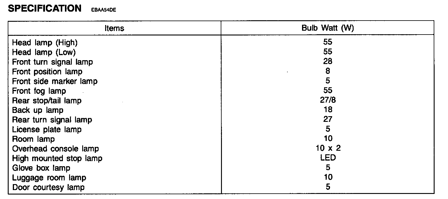 Lighting and Horns: Specifications
