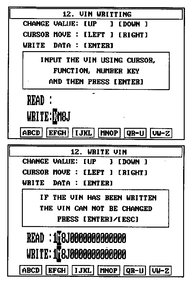 4. Write the VIN with cursor, function and number keys.