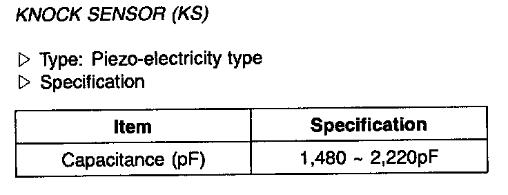 Knock Sensor (KS) - Specification: